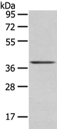 Gel: 8%SDS-PAGE, Lysate: 40 μg, Lane: Mouse brain tissue, Primary antibody: CSB-PA554204(WNT10A Antibody) at dilution 1/200 dilution, Secondary antibody: Goat anti rabbit IgG at 1/8000 dilution, Exposure time: 10 seconds