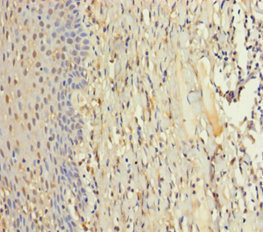 Immunohistochemistry of paraffin-embedded human tonsil tissue using CSB-PA866211LA01HU at dilution of 1:100