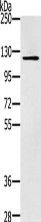 Gel: 6%SDS-PAGE, Lysate: 40 μg, Lane: Skov3 cells, Primary antibody: CSB-PA103365(ZMIZ1 Antibody) at dilution 1/200, Secondary antibody: Goat anti rabbit IgG at 1/8000 dilution, Exposure time: 2 minutes