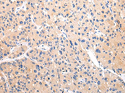 The image on the left is immunohistochemistry of paraffin-embedded Human liver cancer tissue using CSB-PA163015(ZNF106 Antibody) at dilution 1/20, on the right is treated with synthetic peptide. (Original magnification: ×200)