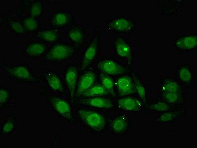 Immunofluorescent analysis of A549 cells using CSB-PA026702LA01HU at dilution of 1:100 and Alexa Fluor 488-congugated AffiniPure Goat Anti-Rabbit IgG(H+L)