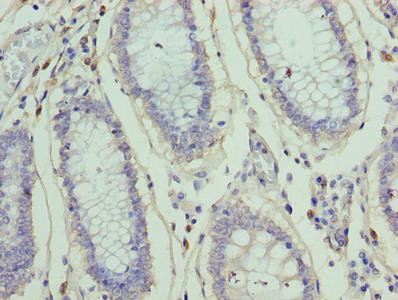 Immunohistochemistry of paraffin-embedded human colon cancer using CSB-PA026835LA01HU at dilution of 1:100