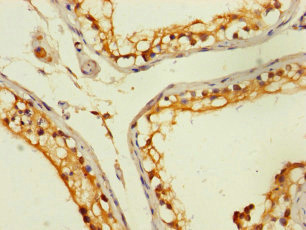 Immunohistochemistry of paraffin-embedded human testis tissue using CSB-PA026843LA01HU at dilution of 1:100