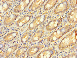 Immunohistochemistry of paraffin-embedded human small intestine tissue using CSB-PA026843LA01HU at dilution of 1:100