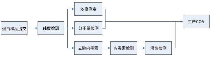 華美生物所有蛋白產(chǎn)品都會(huì)經(jīng)過(guò)嚴(yán)格的質(zhì)量控制,包括蛋白質(zhì)的濃度測(cè)定、純度測(cè)定、分子量檢測(cè)、內(nèi)毒素檢測(cè)、蛋白質(zhì)活性檢等。蛋白質(zhì)質(zhì)量控制的流程圖如下: