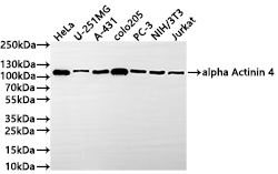 別名:actinin 4 antibody; Actinin alpha 4 antibody; actinin4 antibody; ACTN 4 antibody; ACTN4 antibody; ACTN4_HUMAN antibody; Alpha-actinin-4 antibody; DKFZp686K23158 antibody; F actin cross linking protein antibody; F-actin cross-linking protein antibody; Focal segmental glomerulosclerosis 1 antibody; FSGS 1 antibody; FSGS antibody; FSGS1 antibody; Non muscle alpha actinin 4 antibody; Non-muscle alpha-actinin 4 antibody