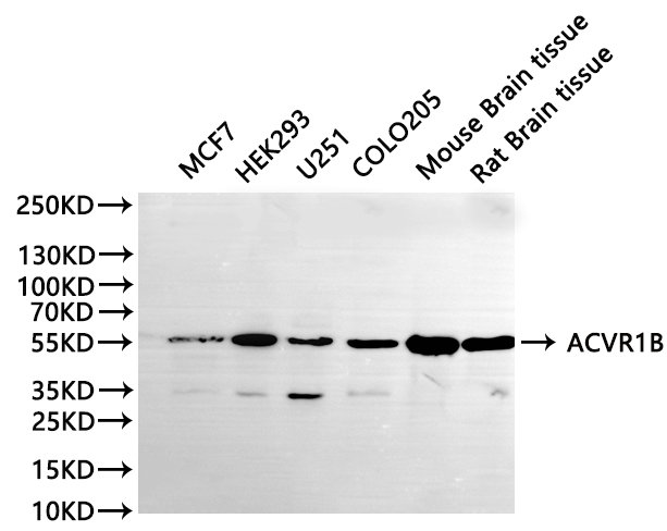 All lanes: ACVR1B antibody at 1:1000