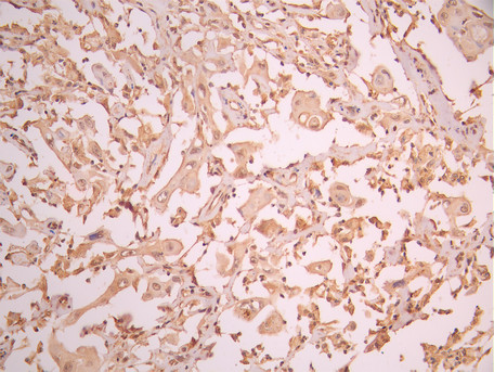 IHC image of CSB-RA238916A0HU diluted at 1:100 and staining in paraffin-embedded human cervical cancer performed on a Leica BondTM system. After dewaxing and hydration, antigen retrieval was mediated by high pressure in a citrate buffer (pH 6.0). Section was blocked with 10% normal goat serum 30min at RT. Then primary antibody (1% BSA) was incubated at 4°C overnight. The primary is detected by a Goat anti-rabbit polymer IgG labeled by HRP and visualized using 0.05% DAB.