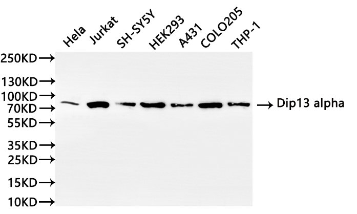All lanes: Dip13 alpha antibody at 1:1000