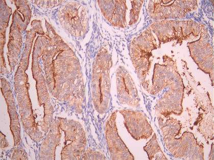 - In colorectal adenocarcinoma, 31.1% had high levels of expression of AQP5, 64.4% exhibited a moderate level of staining, and 4.4% had an absence of AQP5 staining. AQP5 was only occasionally detected in para-neoplastic (6.67%) and normal tissues (6.67%). PMID: 25109507