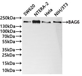 免疫原:A synthesized peptide from human BAG6 protein