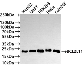 All lanes: BCL2L11 antibody at 1:1000
