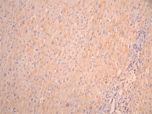 IHC image of CSB-RA002831MA1HU diluted at 1:50 and staining in paraffin-embedded human liver cancer performed on a Leica BondTM system. After dewaxing and hydration, antigen retrieval was mediated by high pressure in a citrate buffer (pH 6.0). Section was blocked with 10% normal goat serum 30min at RT. Then primary antibody (1% BSA) was incubated at 4°C overnight. The primary is detected by a Anti-Human lgG, Fcy Fragment Specific labeled by HRP and visualized using 0.05% DAB.