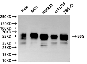 All lanes: BSG antibody at 1:1000