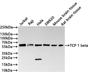 All lanes: TCP 1 beta antibody at 1:1000