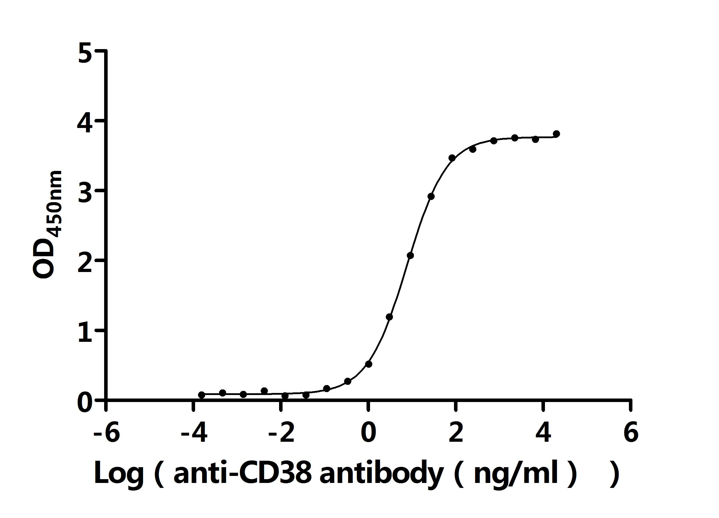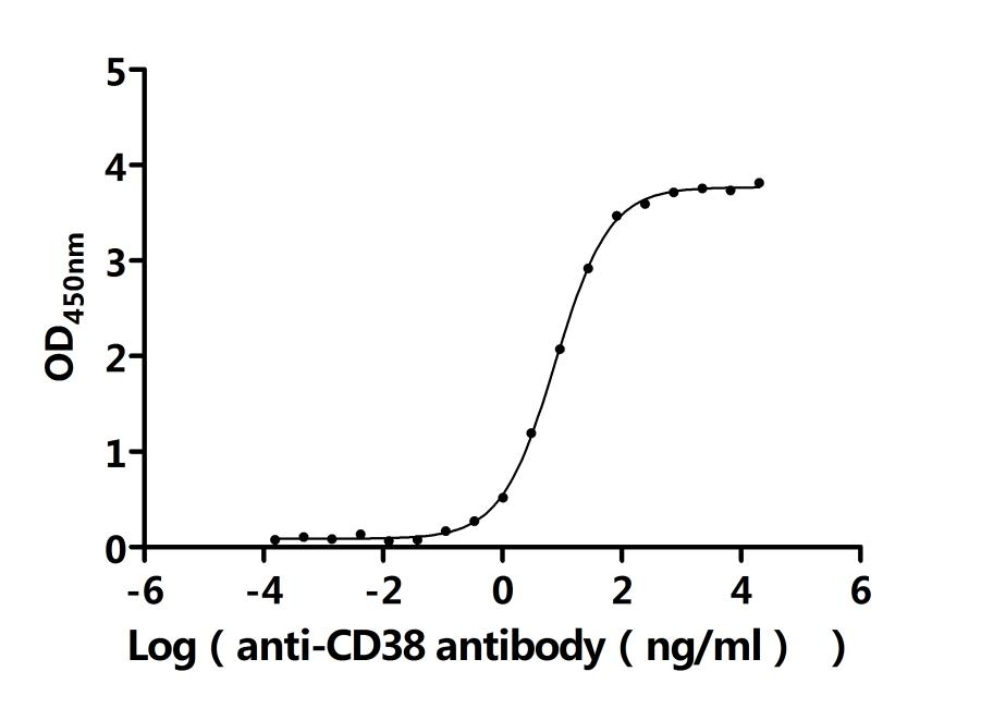 Activity: Measured by its binding ability in a functional ELISA.Immobilized Human CD38(CSB-MP004929HUc7) at 2 μg/mL can bind Anti-CD38 recombinant antibody. The EC50 is 7.073-8.315 ng/mL. -