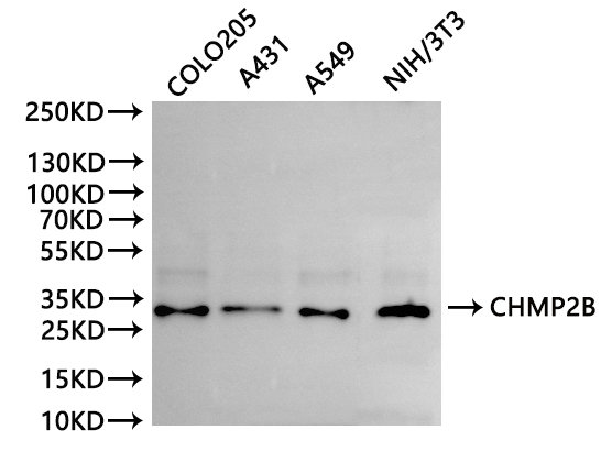 All lanes: CHMP2B antibody at 1:1000