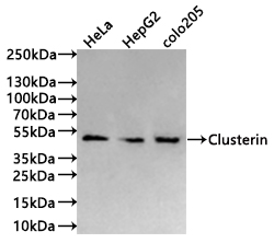 Positive WB detected in: HeLa whole cell lysate(30μg), HepG2 whole cell lysate(30μg), colo205 whole cell lysate(30μg)