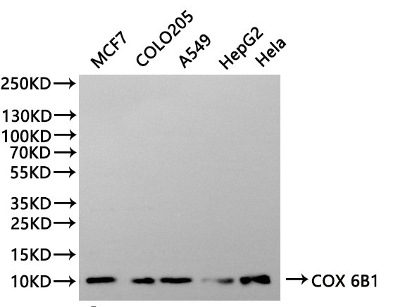 All lanes:COX 6B1 antibody at 1:1000