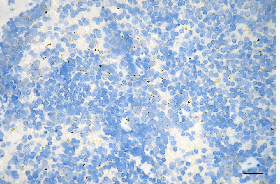 Immunohistochemistry was performed on paraffin-embedded mouse spleen using carbamoyl-phosphate synthase 1 antibody. Antigen retrieval was done in sodium citrate buffer (pH 6.0). DAB was used for detection, with hematoxylin counterstaining. Images were acquired using a Nikon Ci-L Plus microscope (40× objective). Scale bar: 25 μm.