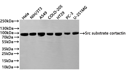 All lanes: Src substrate cortactin antibody at 1:1000