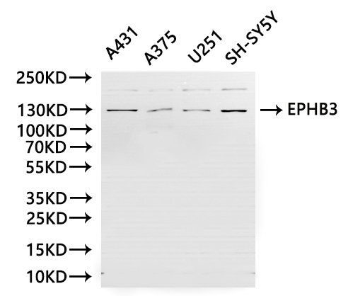 All lanes: EPHB3 antibody at 1:1000