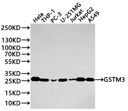 All lanes: GSTM3 antibody at 1:1000
