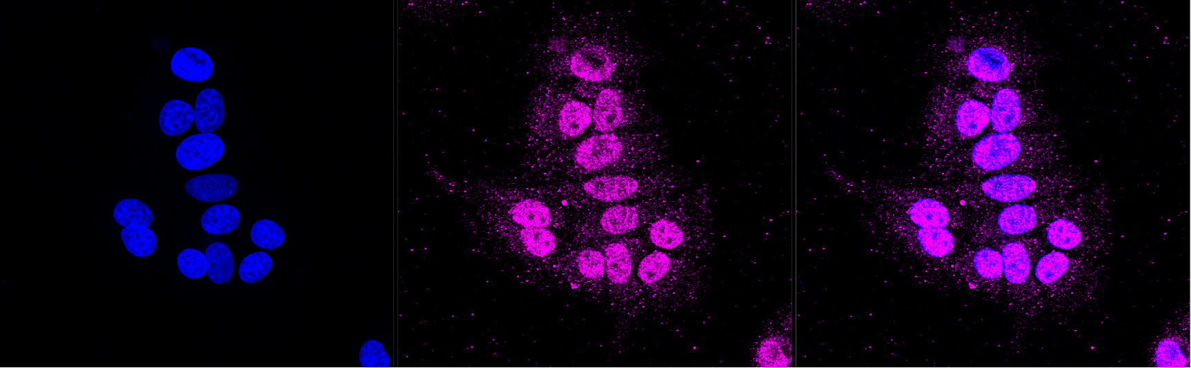 Immunocytochemical staining of HepG2 cells with HDAC3 antibody. Nuclei were stained blue with DAPI; HDAC3 was stained magenta with Alexa Fluor? 647. Images were taken using Leica stellaris 5. Protein abundance based on laser Intensity and smart gain: Medium. Scale bar, 20 μm.