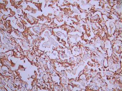 IHC image of CSB-RA260175A0HU diluted at 1:100 and staining in paraffin-embedded human lung tissue performed on a Leica BondTM system. After dewaxing and hydration, antigen retrieval was mediated by high pressure in a citrate buffer (pH 6.0). Section was blocked with 10% normal goat serum 30min at RT. Then primary antibody (1% BSA) was incubated at 4°C overnight. The primary is detected by a Goat anti-rabbit polymer IgG labeled by HRP and visualized using 0.05% DAB.