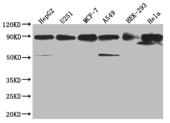 Positive WB detected in: HepG2 whole cell lysate, U251 whole cell lysate, MCF-7 whole cell lysate, A549 whole cell lysate, HEK293 whole cell lysate, Hela whole cell lysate