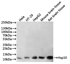 Positive WB detected in: Hela whole cell lysate(30μg), HT-29 whole cell lysate(30μg), HepG2 whole cell lysate(30μg), Mouse brain tissue lysate(30μg), Rat kidney tissue lysate(30μg)