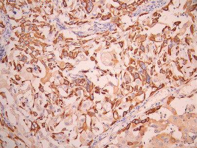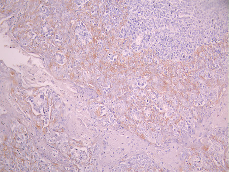 IHC image of CSB-RA090368A0HU diluted at 1:100 and staining in paraffin-embedded human cervical cancer performed on a Leica BondTM system. After dewaxing and hydration, antigen retrieval was mediated by high pressure in a citrate buffer (pH 6.0). Section was blocked with 10% normal goat serum 30min at RT. Then primary antibody (1% BSA) was incubated at 4°C overnight. The primary is detected by a Goat anti-rabbit polymer IgG labeled by HRP and visualized using 0.05% DAB.