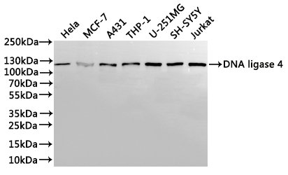 All lanes: DNA ligase 4 antibody at 1:1000