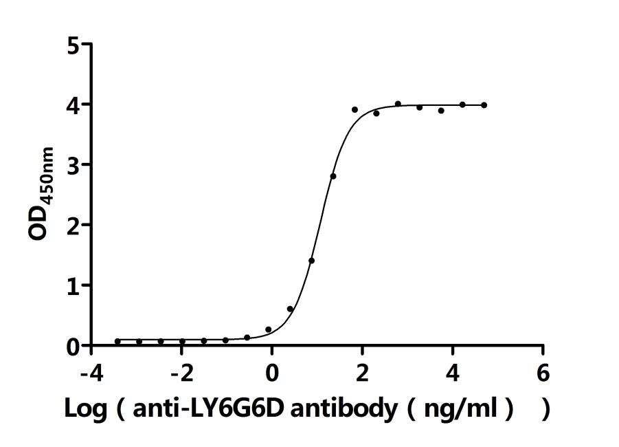 Activity: Measured by its binding ability in a functional ELISA. Immobilized Human LY6G6D (CSB-YP013246HU) at 2 μg/mL can bind Anti-LY6G6D recombinant antibody. The EC50 is 10.57-13.27 ng/mL. -