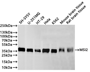 All lanes: MSI2 antibody at 1:1000