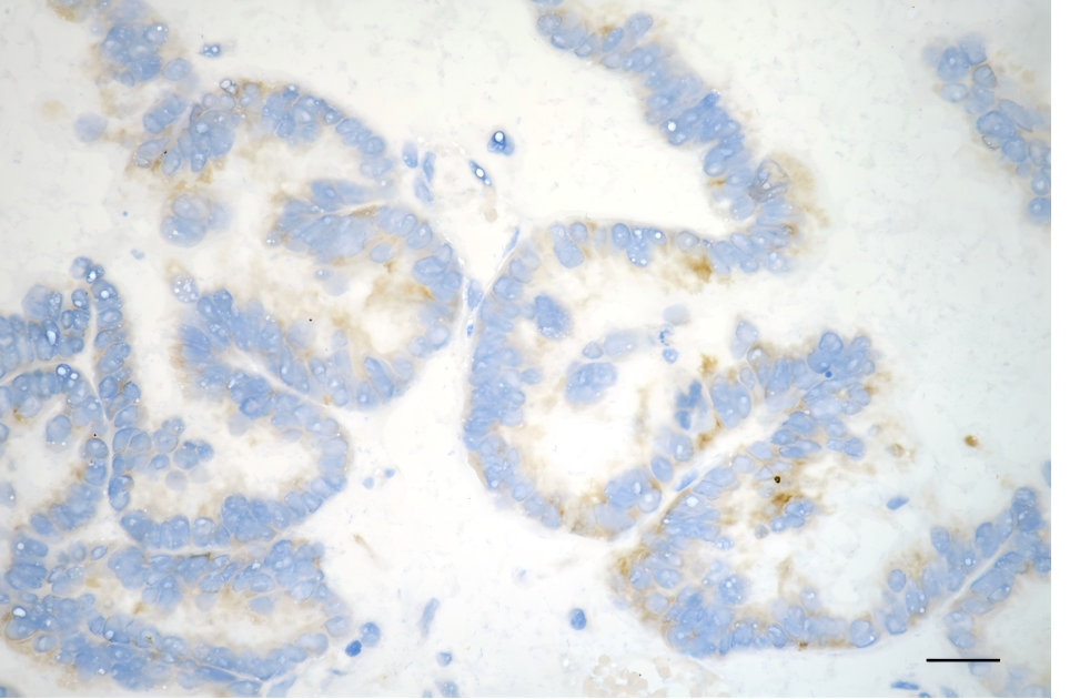 Immunohistochemistry was performed on paraffin-embedded human ovarian carcinoma using MSI2 antibody. Antigen retrieval was done in sodium citrate buffer (pH 6.0). DAB was used for detection, with hematoxylin counterstaining. Images were acquired using a Nikon Ci-L Plus microscope (40× objective). Scale bar: 25 μm.