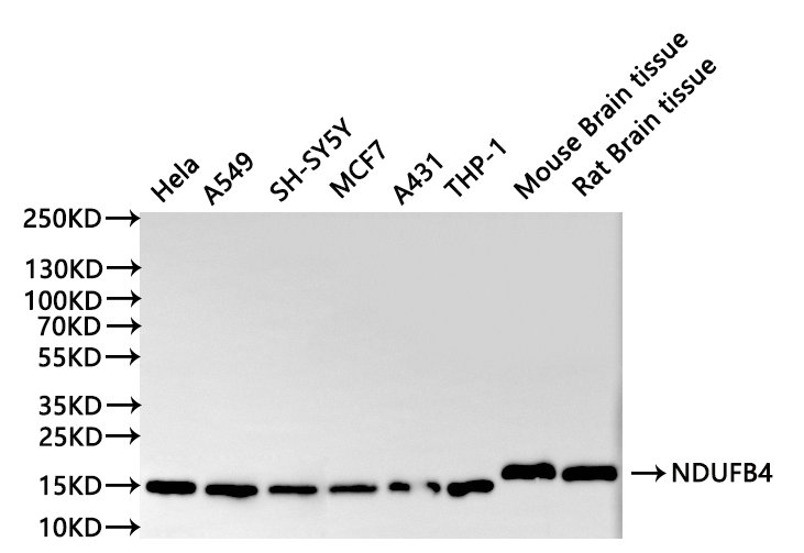 All lanes: NDUFB4 antibody at 1:1000