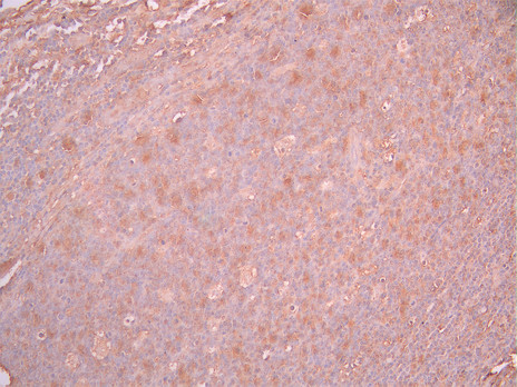 IHC image of CSB-RA028490A0HU diluted at 1:100 and staining in paraffin-embedded human tonsil tissue performed on a Leica BondTM system. After dewaxing and hydration, antigen retrieval was mediated by high pressure in a citrate buffer (pH 6.0). Section was blocked with 10% normal goat serum 30min at RT. Then primary antibody (1% BSA) was incubated at 4°C overnight. The primary is detected by a Goat anti-rabbit polymer IgG labeled by HRP and visualized using 0.05% DAB.