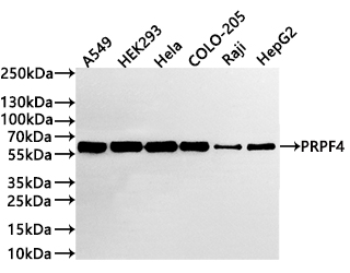 All lanes: PRPF4 antibody at 1:1000