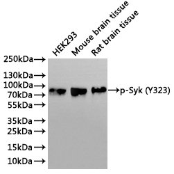 All lanes: p-Syk (Y323) antibody at 1:1000