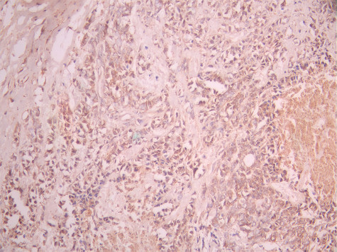 IHC image of CSB-RA990431A0HU diluted at 1:100 and staining in paraffin-embedded human breast cancer performed on a Leica BondTM system. After dewaxing and hydration, antigen retrieval was mediated by high pressure in a citrate buffer (pH 6.0). Section was blocked with 10% normal goat serum 30min at RT. Then primary antibody (1% BSA) was incubated at 4°C overnight. The primary is detected by a Goat anti-rabbit polymer IgG labeled by HRP and visualized using 0.05% DAB.