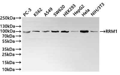 All lanes: RRM1 antibody at 1:1000