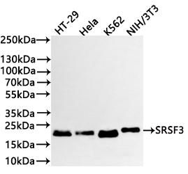 All lanes: SRSF3 antibody at 1:1000