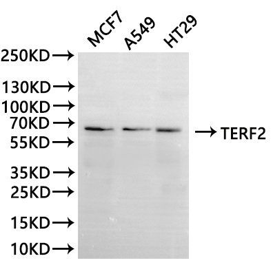 別名:Telomeric DNA binding protein antibody; Telomeric DNA-binding protein antibody; Telomeric repeat binding factor 2 antibody; Telomeric repeat binding protein 2 antibody; Telomeric repeat-binding factor 2 antibody; TERF 2 antibody; Terf2 antibody; TERF2_HUMAN antibody; TRBF 2 antibody; TRBF2 antibody; TRF 2 antibody; TRF2 antibody; TTAGGG repeat binding factor 2 antibody; TTAGGG repeat-binding factor 2 antibody