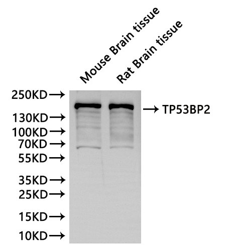 All lanes:TP53BP2 antibody at 1:1000