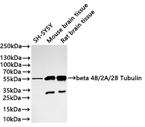 All lanes: beta 4B/2A/2B Tubulin antibody at 1:1000