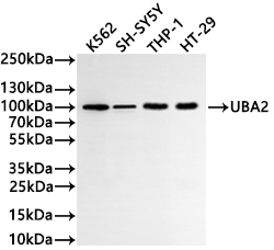Positive WB detected in: K562 whole cell lysate(30μg), SH-SY5Y whole cell lysate(30μg), THP-1 whole cell lysate(30μg), HT-29 whole cell lysate(30μg)