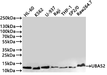 Positive WB detected in: HL-60 whole cell lysate(30μg), K562 whole cell lysate(30μg), U-937 whole cell lysate(30μg), Raji whole cell lysate(30μg), THP-1 whole cell lysate(30μg), SP2/0 whole cell lysate(30μg), Raw264.7 whole cell lysate(30μg)