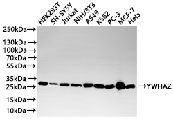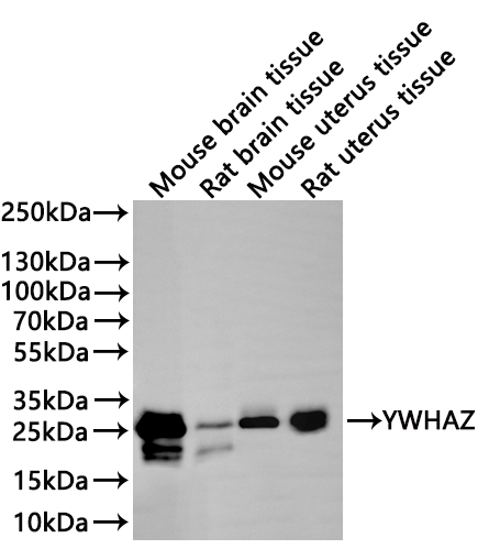 All lanes: YWHAZ antibody at 1:1000