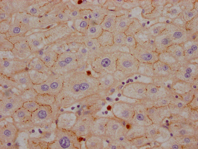 IHC image of CSB-RA147192A0HU diluted at 1:100 and staining in paraffin-embedded human liver cancer performed on a Leica BondTM system. After dewaxing and hydration, antigen retrieval was mediated by high pressure in a citrate buffer (pH 6.0). Section was blocked with 10% normal goat serum 30min at RT. Then primary antibody (1% BSA) was incubated at 4℃ overnight. The primary is detected by a Goat anti-rabbit IgG polymer labeled by HRP and visualized using 0.05% DAB.